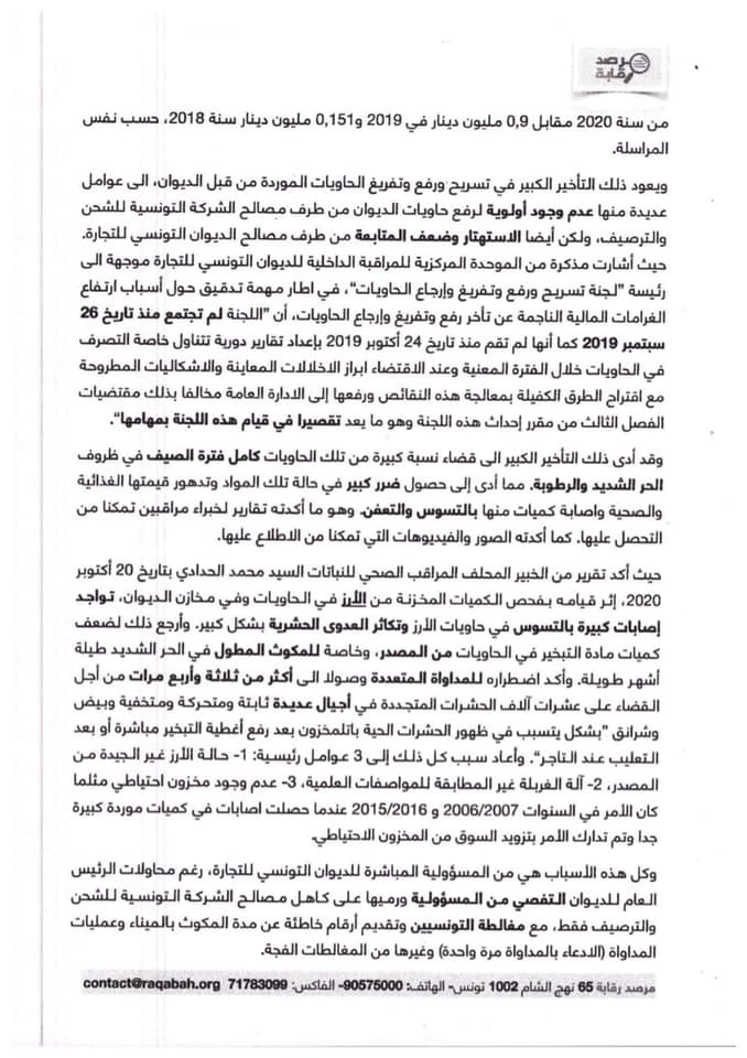 المدير العام للديوان ووزير التجارة ورئيس الحكومة واللجنة البرلمانية المختصة يتحمّلون المسؤولية الكاملة من أجل ضرورة فتح تحقيق واتخاذ اجراءات صارمة من أجل منح الأولوية القصوى في التفريغ للحاويات التي تحمل المواد الغذائية المستوردة من طرف الدولة حتى لا تتكرر هذه الكارثة.