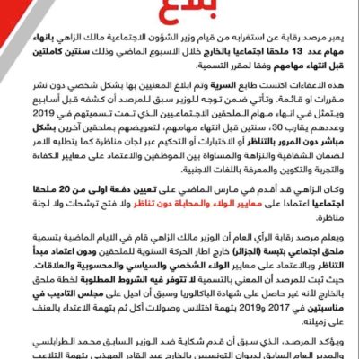 وجاءت تصريحات الدائمي خلال مداخلة له ضمن تقرير مُتلفز لـ”قناة العربي” التي تبثُ من لندن، وحمل التقرير عنوان: “هل تشعل إقالة رئيس هيئة مكافحة الفساد أزمة جديدة بين سعيد والمشيشي في تونس؟”